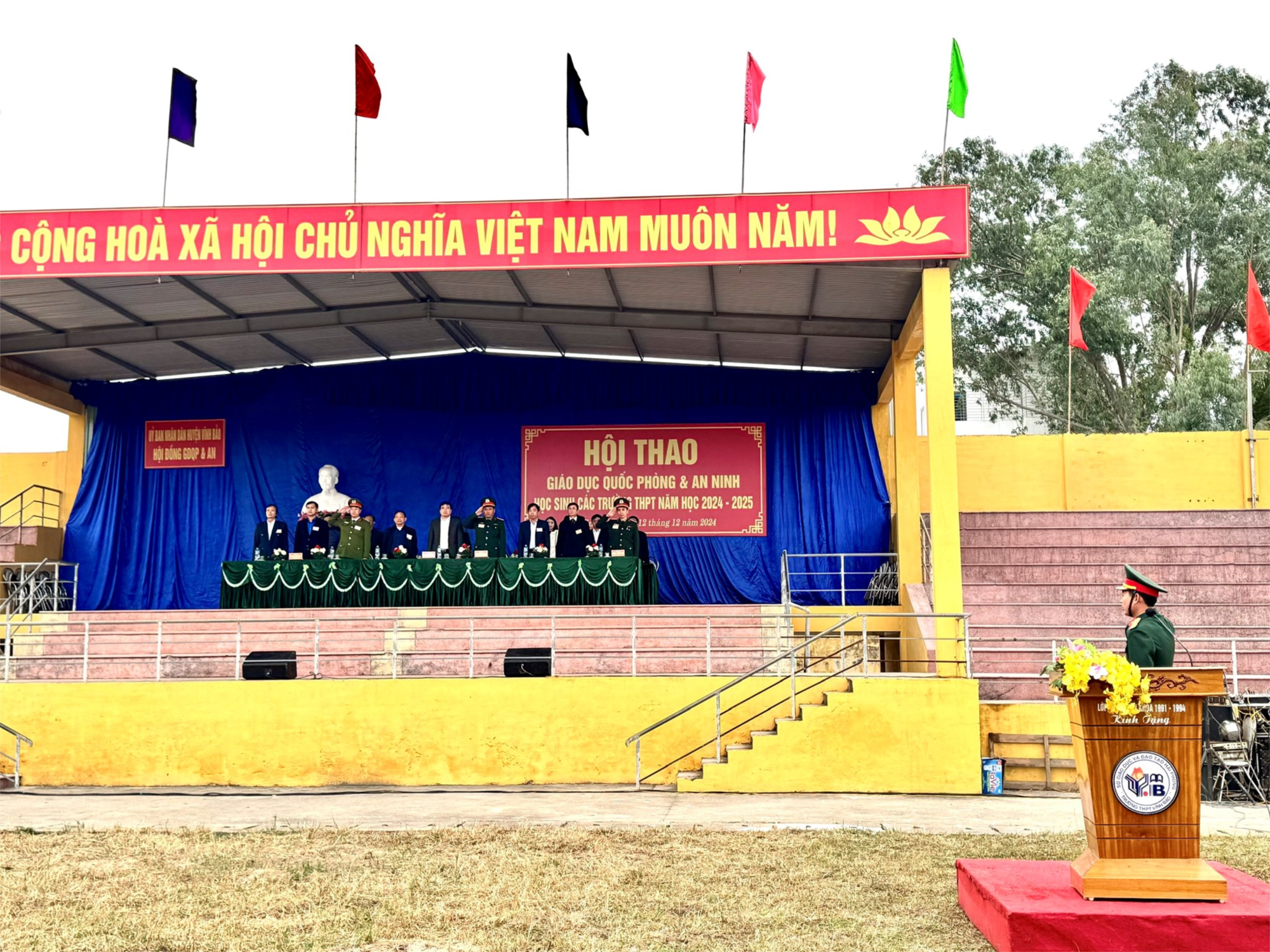 Thực hiện Kế hoạch số 317/KH-HĐGDQP&AN ngày 07 tháng 11 năm 2024 của Hội đồng giáo dục Quốc phòng và An ninh huyện Vĩnh Bảo về việc tổ chức Hội thao môn học GDQP-AN cho học sinh các trường THPT trên địa bàn huyện năm học 2024-2025. Sáng ngày 12 tháng 12 năm 2024, tại sân vận động huyện Vĩnh Bảo, Ban chỉ huy quân sự huyện Vĩnh Bảo phối hợp với các trường THPT trên địa bàn huyện tổ chức Hội thao giáo dục quốc phòng và an ninh học sinh trung học phổ thông năm học 2024-2025.
